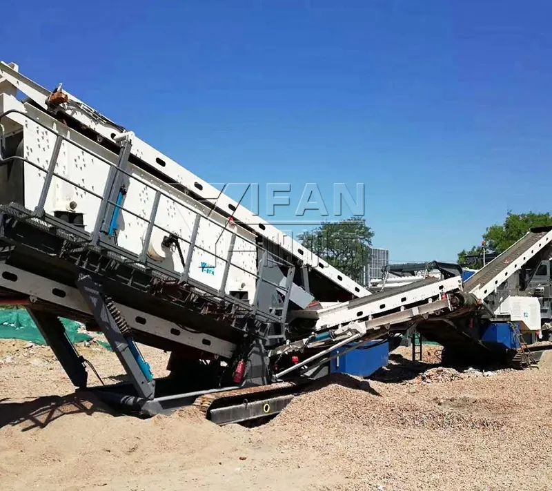 湖南岳陽時(shí)產(chǎn)200噸移動(dòng)式建筑垃圾破碎生產(chǎn)線