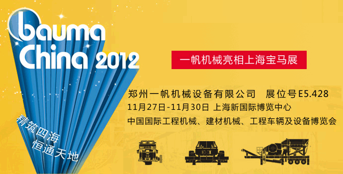 作為中國及亞洲知名的建筑機械行業(yè)盛會,上海BaumaChina將于2012年11月27日—2012年11月30日在上海新國際博覽中心震撼上演。作為能向國際市場展現(xiàn)企業(yè)新品及實力的優(yōu)秀平臺,上海BaumaChina也吸引著眾多的國內(nèi)、國外優(yōu)秀工程機械企業(yè)。屆時,鄭州一帆機械設(shè)備有限公司將攜帶自己的新品優(yōu)品盛裝亮相此次展會。歡迎業(yè)內(nèi)人士到場參觀交流。
