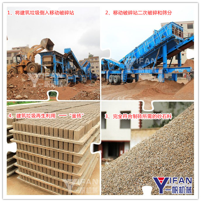 該建筑垃圾處理廠位于云南昆明,這是鄭州一帆機(jī)械公司在今年3月份簽訂的一個(gè)項(xiàng)目客戶。根據(jù)我們售后的跟蹤了解,該移動(dòng)式建筑垃圾處理設(shè)備每天可處理垃圾250噸至300噸,可日產(chǎn)免燒磚8萬(wàn)到10萬(wàn)片。自從該建筑垃圾處理廠今年三月份開(kāi)始投資我公司的一條反擊式移動(dòng)破碎站和一條移動(dòng)篩分站進(jìn)行試運(yùn)營(yíng)后,公司效益得到顯著提高。