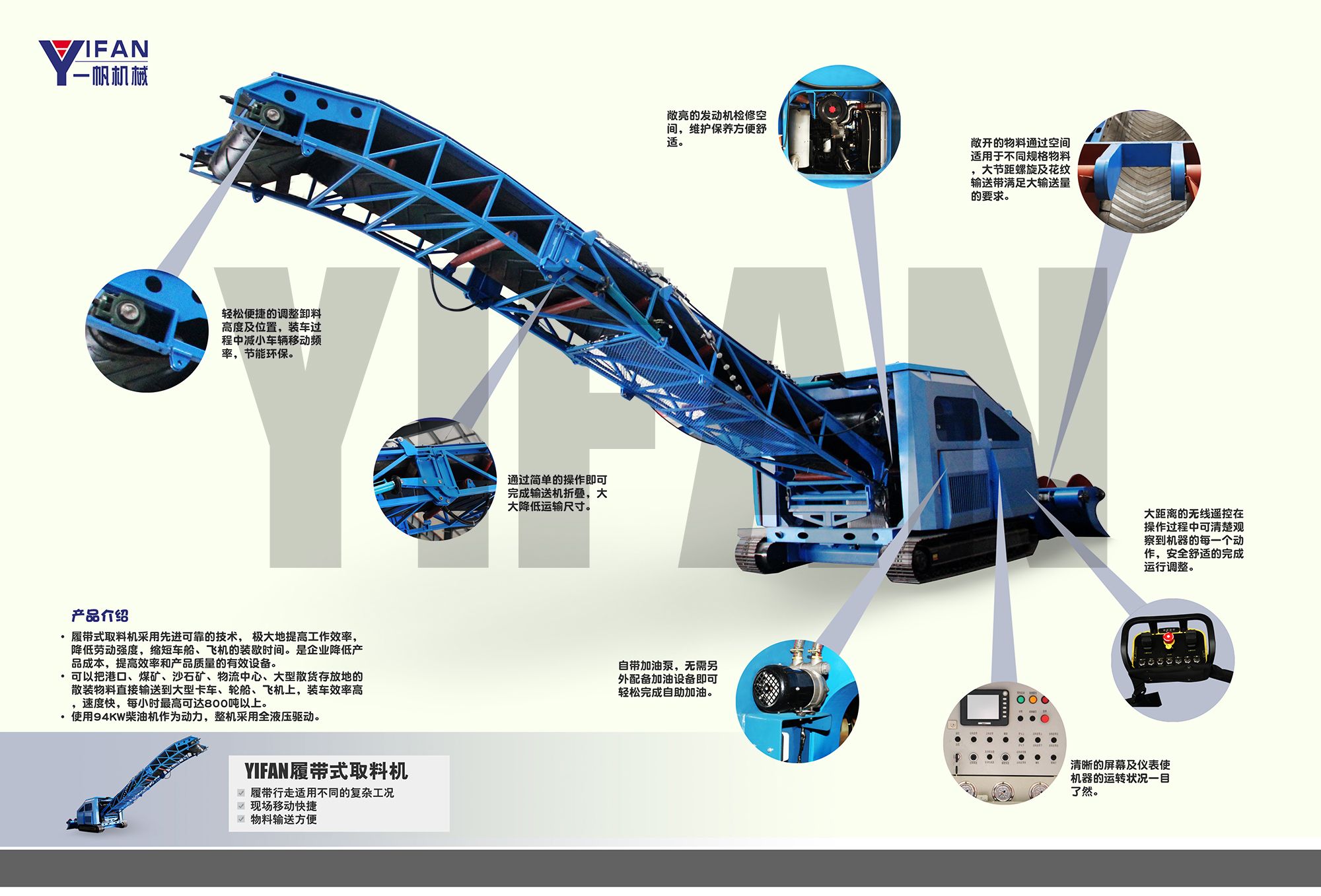 履帶式取料機主要技術參數(shù):